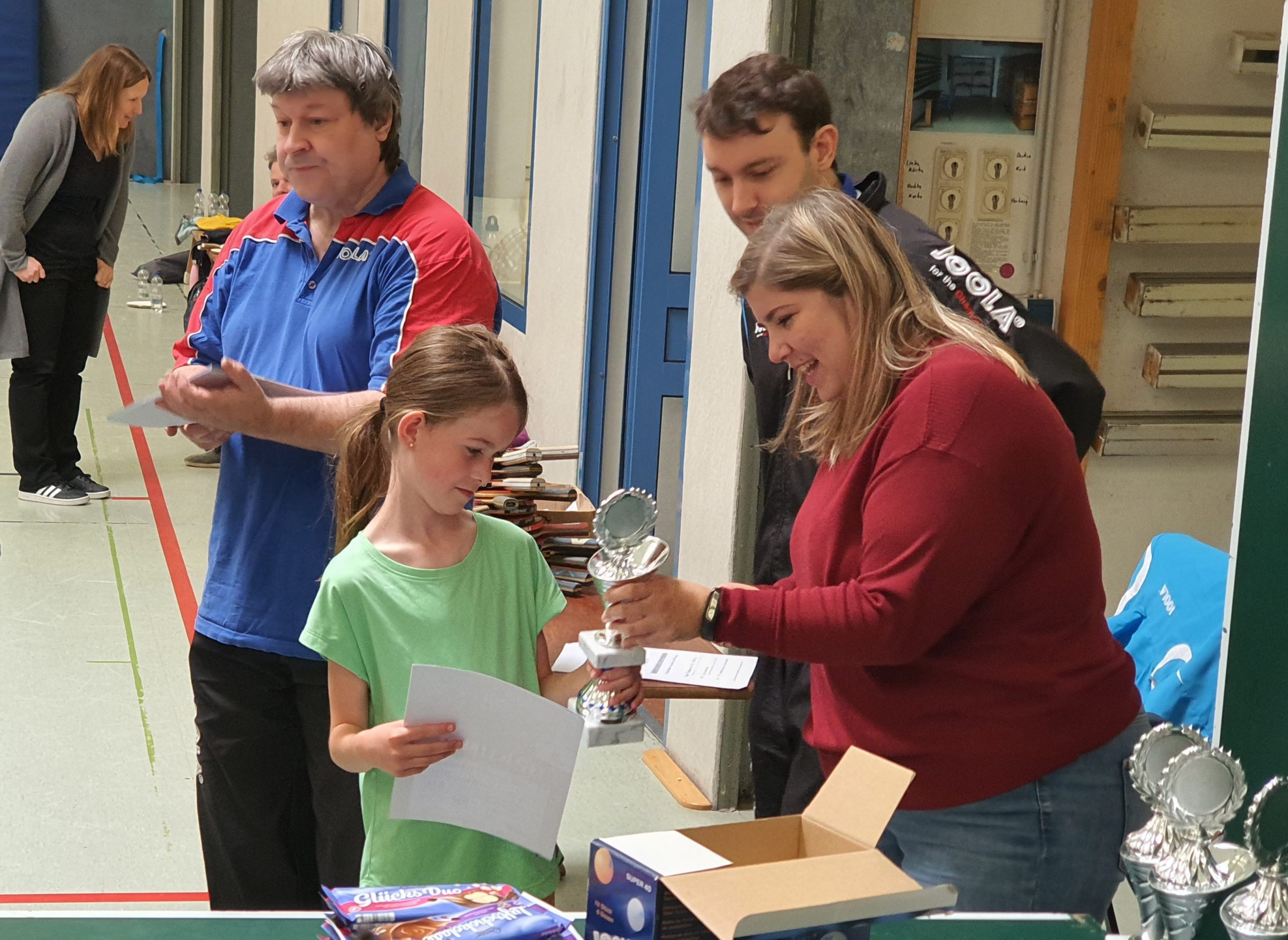 Insgesamt kamen 26 Kinder, 16 Jungen und 10 Mädchen, die in verschiedenen Altersklassen und nach Geschlecht getrennt um Pokale, Urkunden und Sachpreise spielten. Am Ende der Veranstaltung, zu der auch sehr viele Eltern und Geschwister mitgekommen waren, gab es die Siegerehrung, bei der alle Kids geehrt wurden.