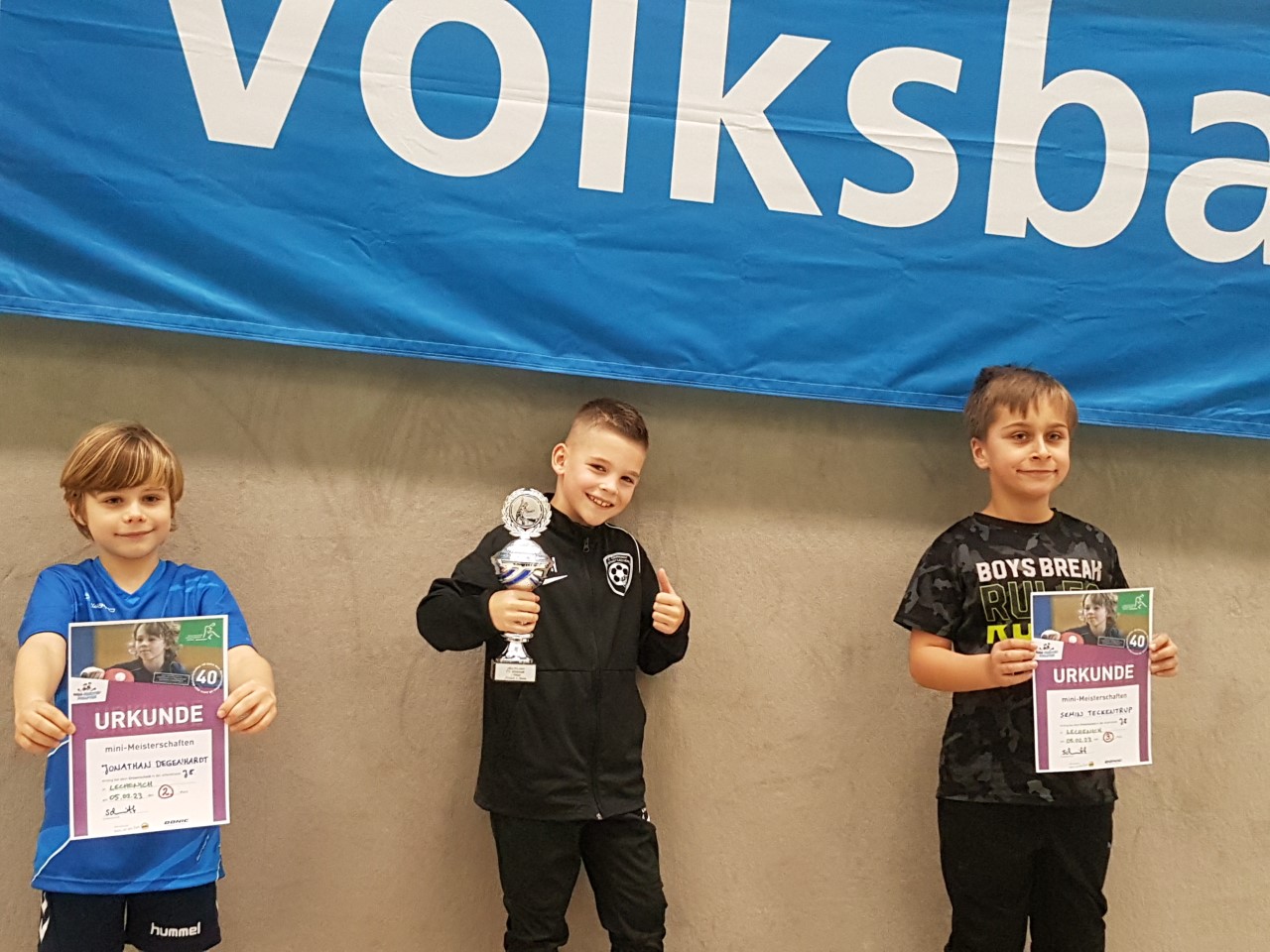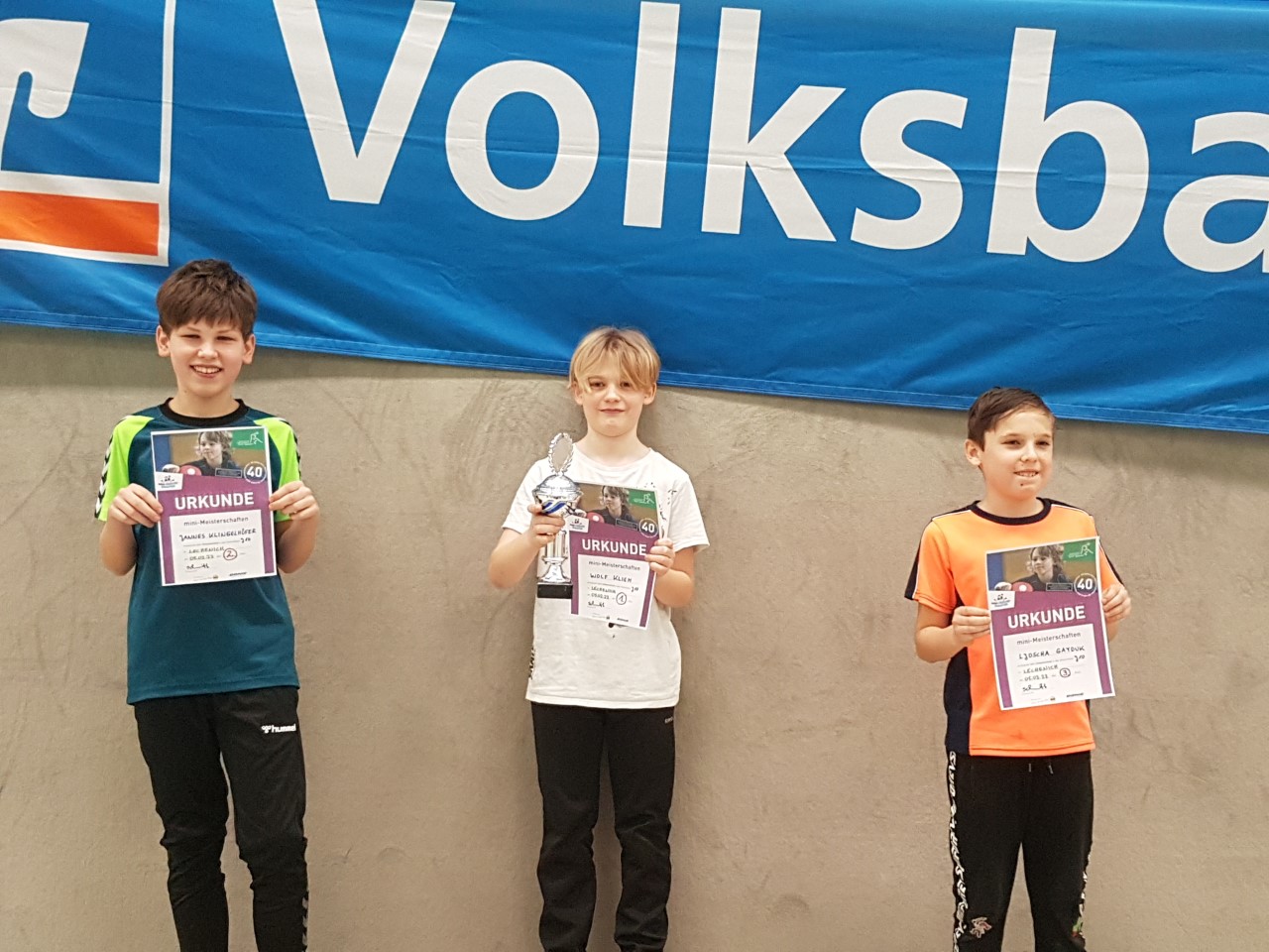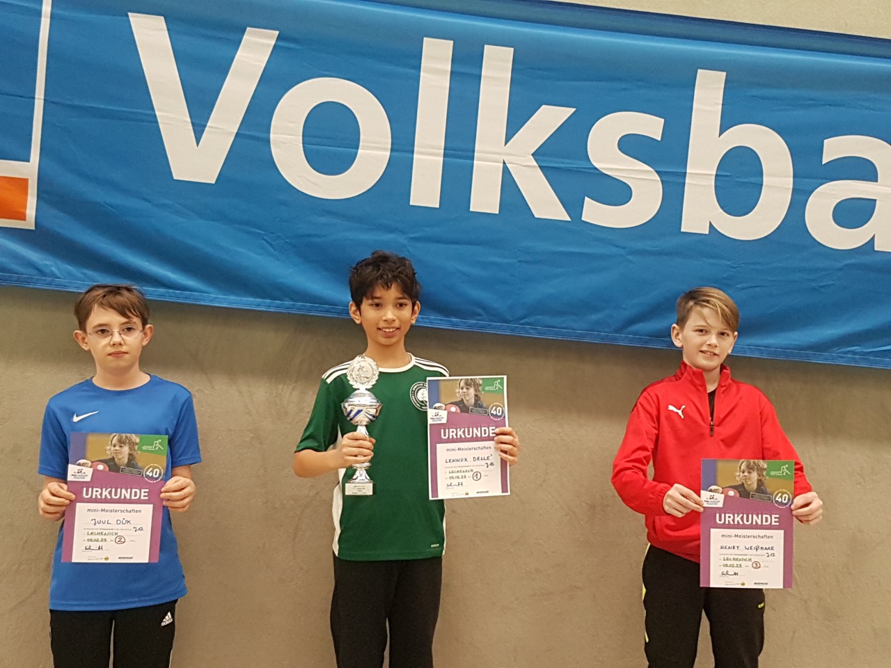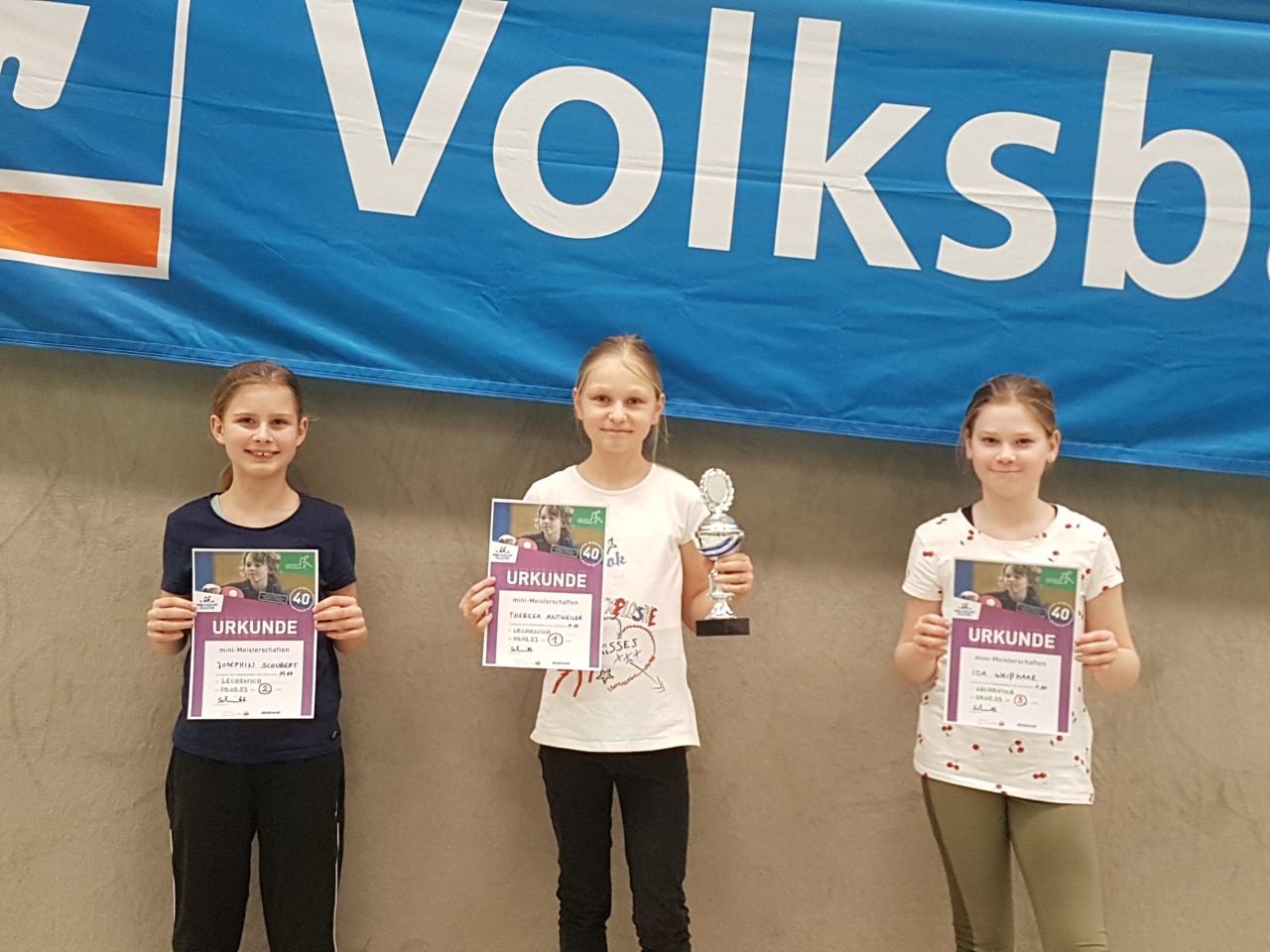 Die Siegerpokale, gestiftet von der Volksbank Rhein-Erft-Köln, konnten folgende Mädchen und Jungen entgegennehmen: